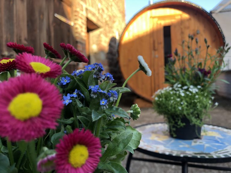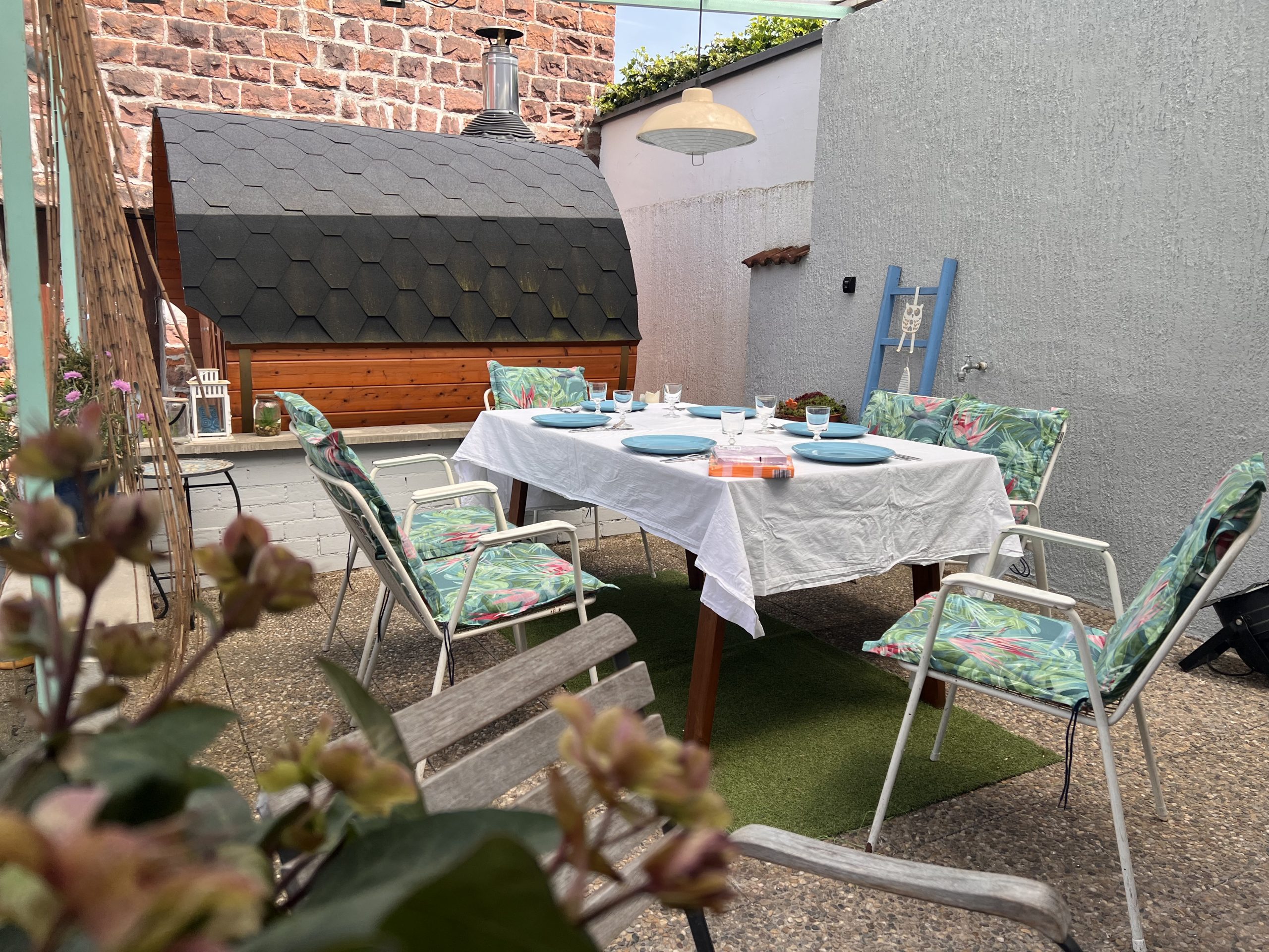 Im Hof gibt es einen Flammkuchenofen, der gerne genutzt werden kann.