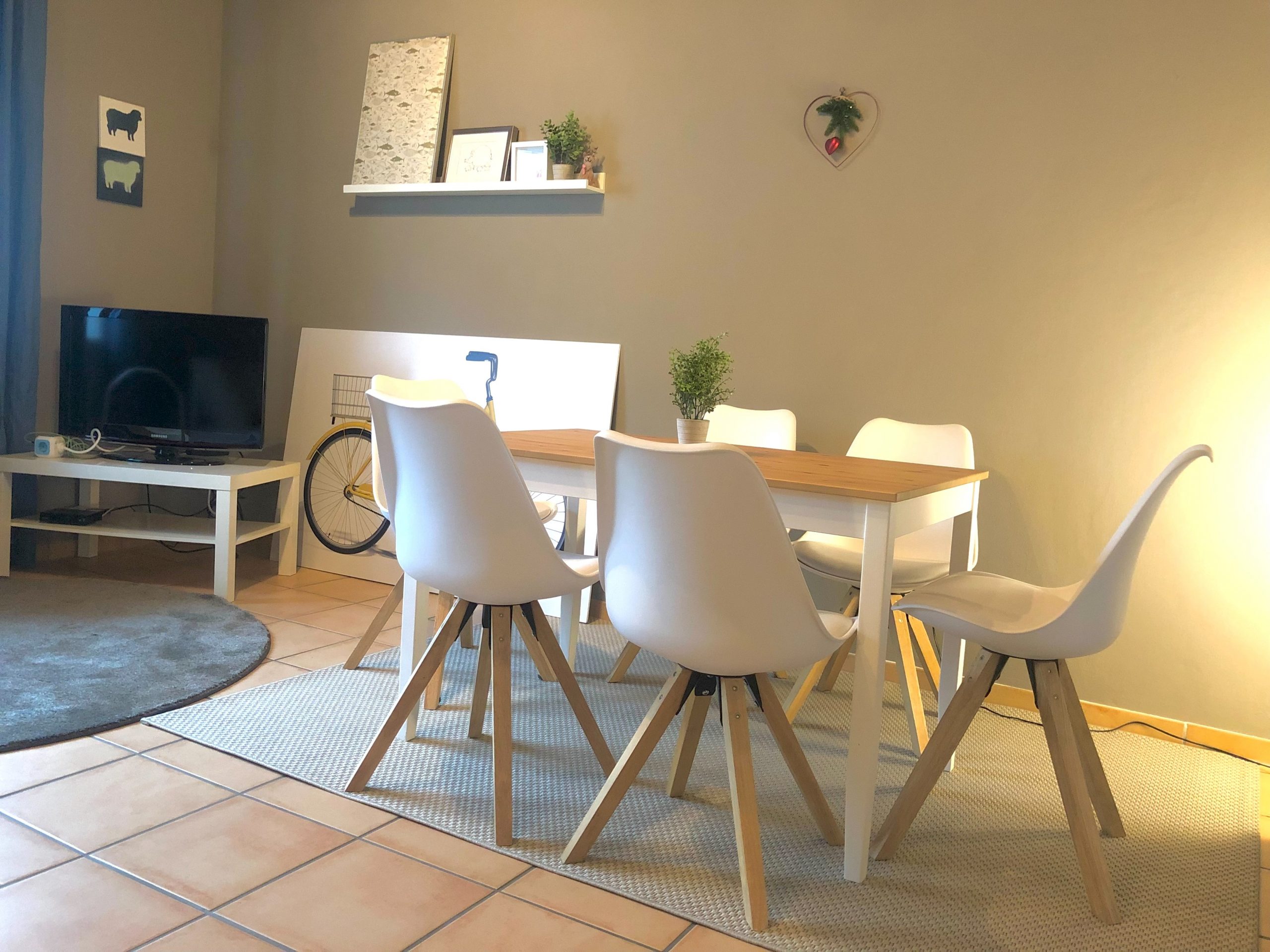 - Arbeitsplatz: Ein Tisch, an dem man bequem mit einem Laptop arbeiten kann und ein Stuhl oder Sessel, in dem es sich angenehm sitzen lässt.